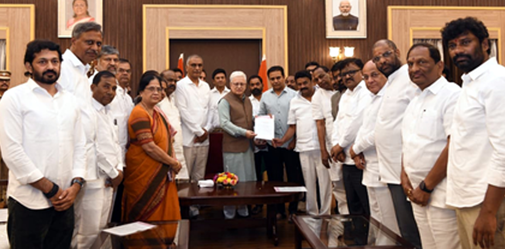A delegation of Bharat Rashtra Samithi (BRS) led by party working president K. T. Rama Rao met the Governor and submitted a representation highlighting alleged irregularities related to tender, procurement, policy, and CSR funds.