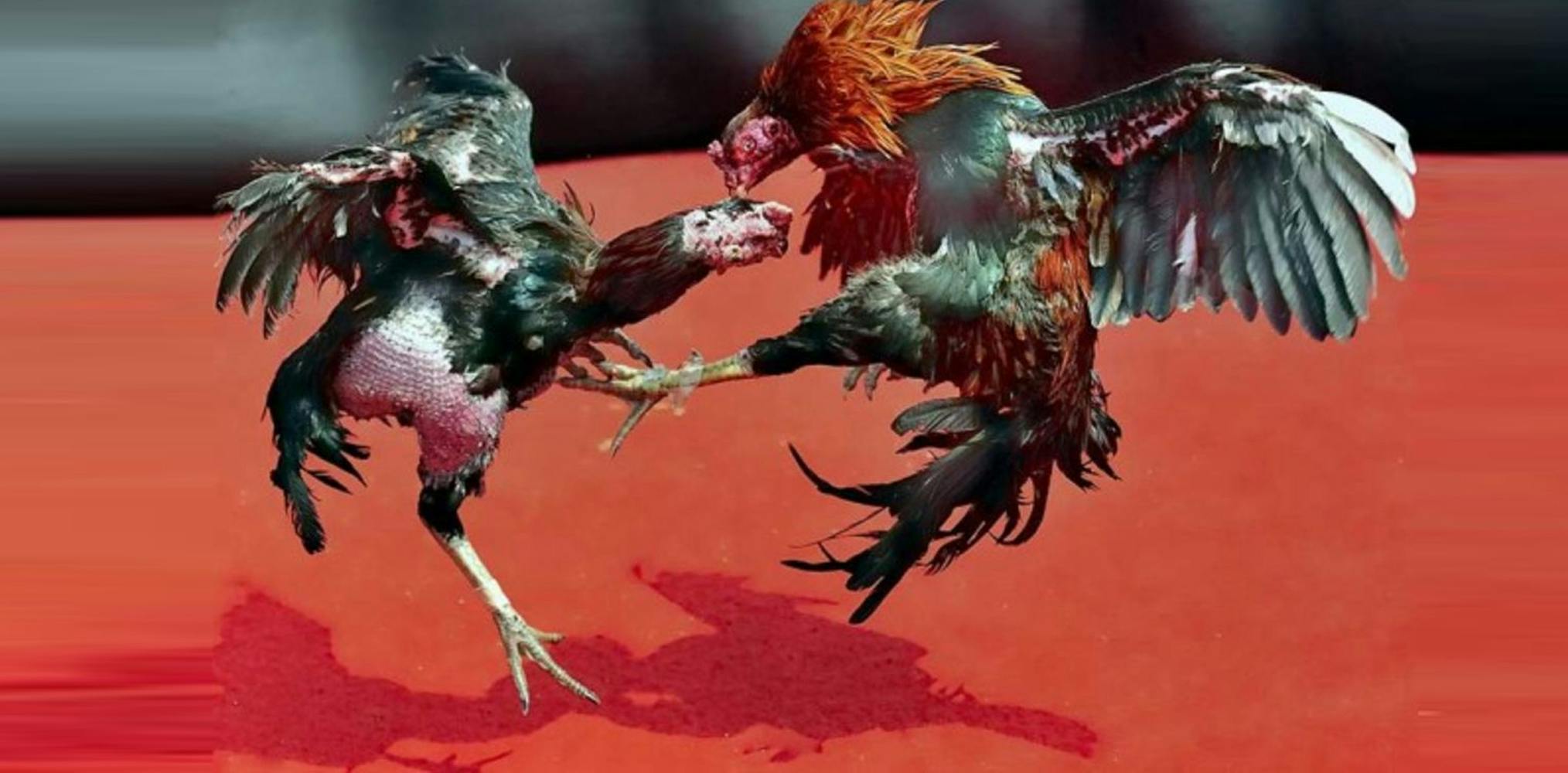 Well-trained cocks with small knives attached to their legs fought amid cheers from the spectators. The fight often ends with the death of one of the two birds.