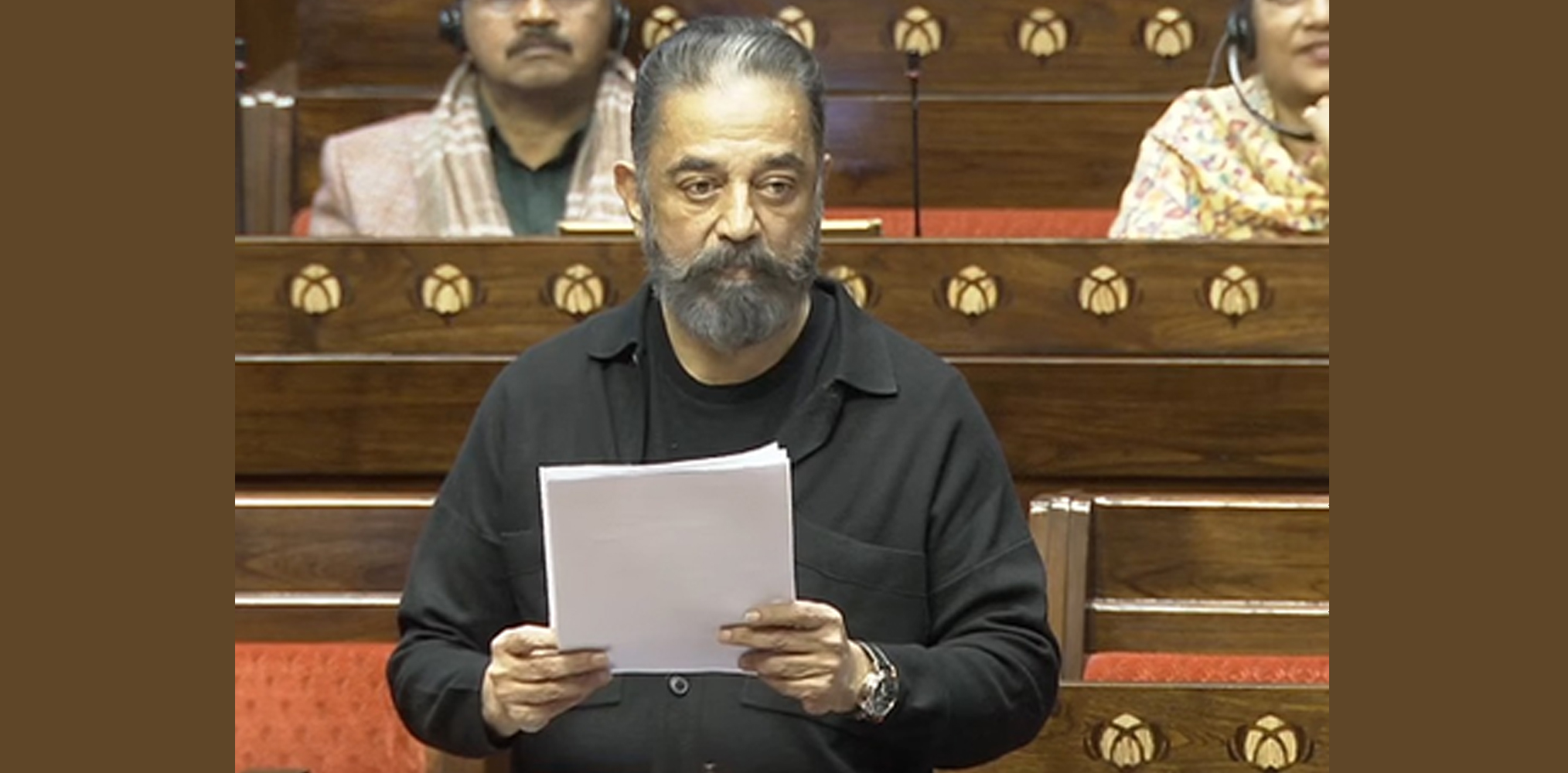 Veteran actor and Makkal Needhi Maiam (MNM) President Kamal Haasan made his maiden speech in the Rajya Sabha on Wednesday, during the ongoing Budget session's discussion on the Motion of Thanks to the President's address.